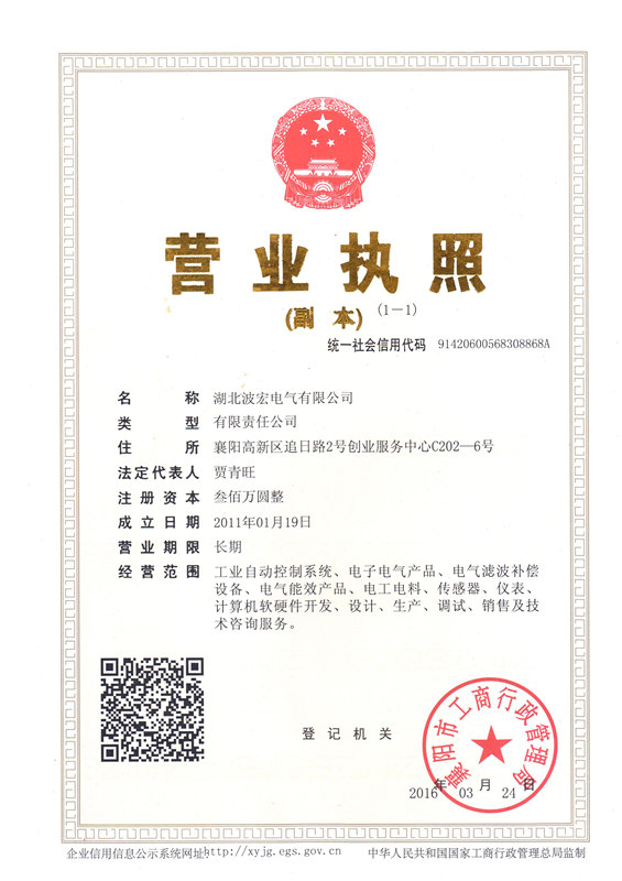 波宏公司營(yíng)業(yè)執(zhí)照