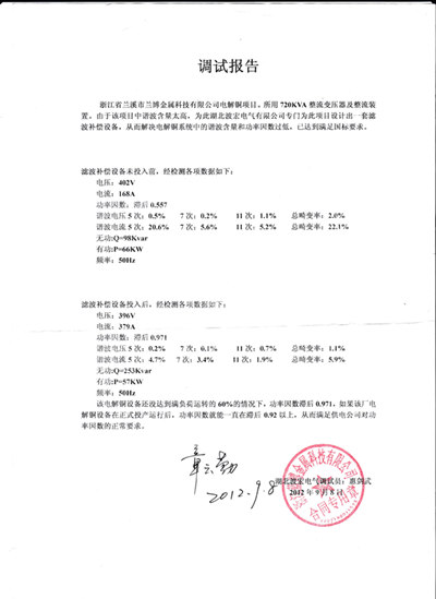 近年來(lái),公司承擔(dān)了煤炭,化工,電力及冶金部門(mén)多套動(dòng)態(tài)補(bǔ)償及濾波裝置的設(shè)備成套,設(shè)計(jì)調(diào)試工作,各項(xiàng)技術(shù)指標(biāo)均達(dá)到國(guó)內(nèi)領(lǐng)先水平。