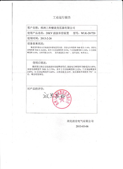 6、采用低損耗的鐵心濾波電抗器,低噪音,電抗器正常運(yùn)行溫升不超過(guò)35K,真正做到“綠色節(jié)能”,綜合損耗小于0.5%,調(diào)諧精度小于0.5%,。